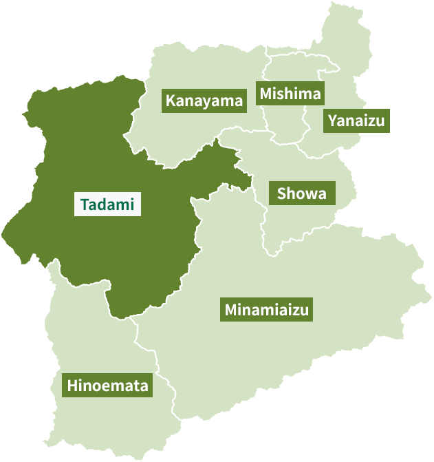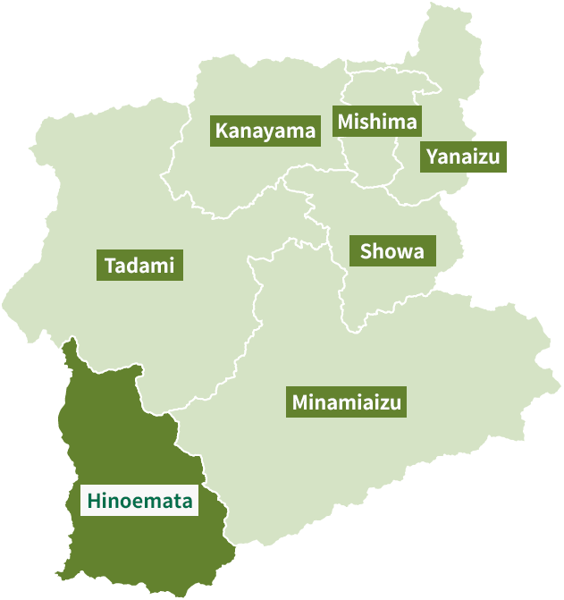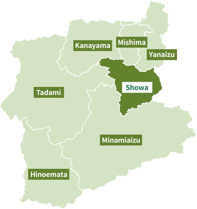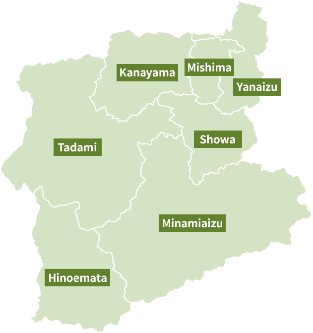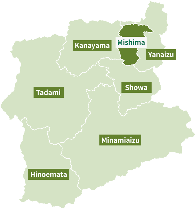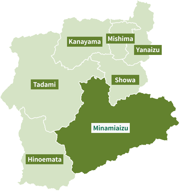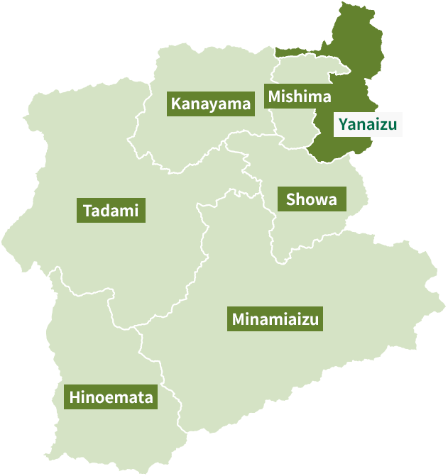 The Okuaizu area is a broad region located in the southwestern part of Fukushima Prefecture, comprising seven towns and villages: Yanaizu, Mishima, Kaneyama, Showa, Tadami, Minamiaizu, and Hinoemata. Each of these municipalities is surrounded by mountains that rise between 1,000 and 2,000 meters. The area is a sparsely populated, mountainous region, where small settlements are scattered across river terraces formed mainly along the Tadami and Ina Rivers.