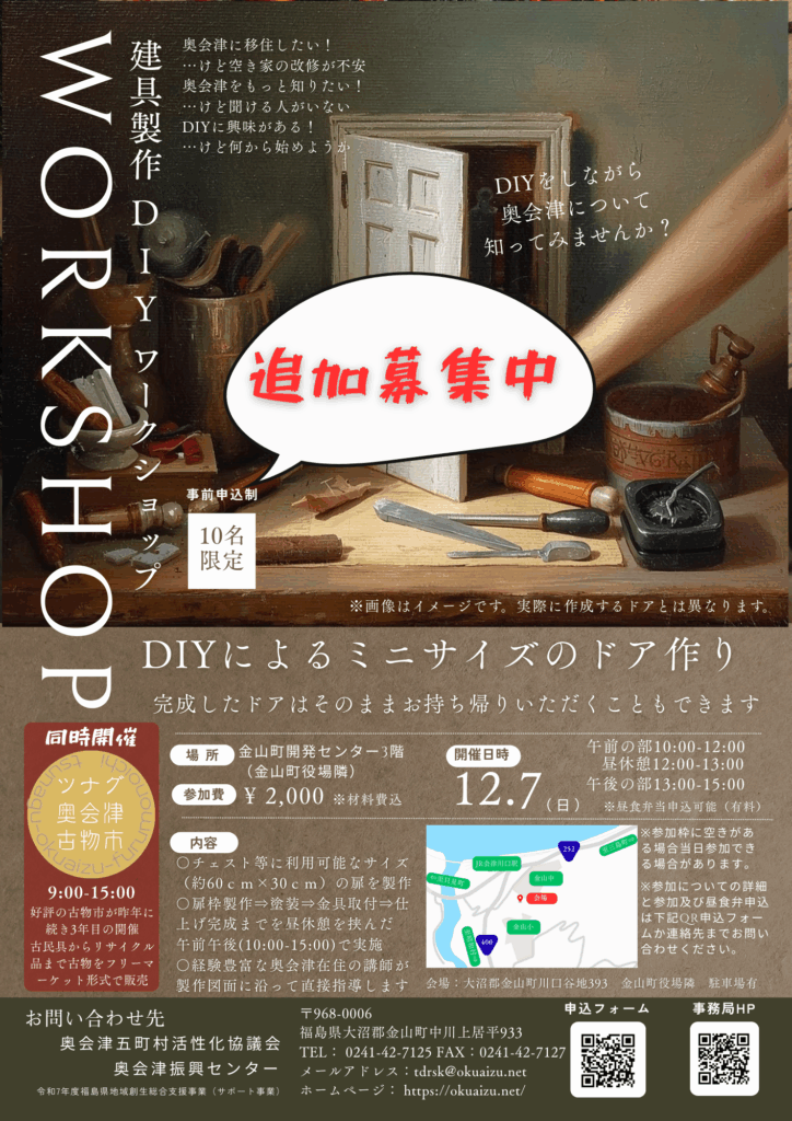 イベント開催 【12/7(日)追加募集】建具製作DIYワークショップ&ツナグ奥会津古物市開催のお知らせ
