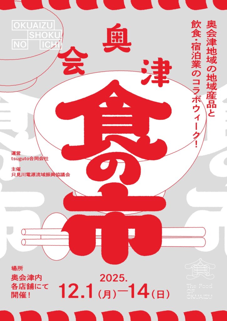 只見川電源流域振興協議会(所在地:福島県大沼郡金山町)は、tsuguto合同会社運営のもと、奥会津地域の食の魅力を広く発信し、地域産品事業者と飲食・宿泊業者が連携を強化する新イベント「奥会津食の市」を、